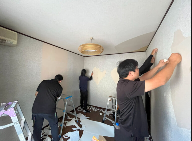 先日、講師をお呼びして、クロス張替えの研修を行いました。