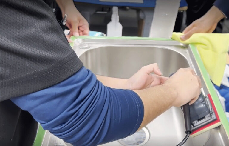 当日はシンクのコーティング技術研修をはじめ、